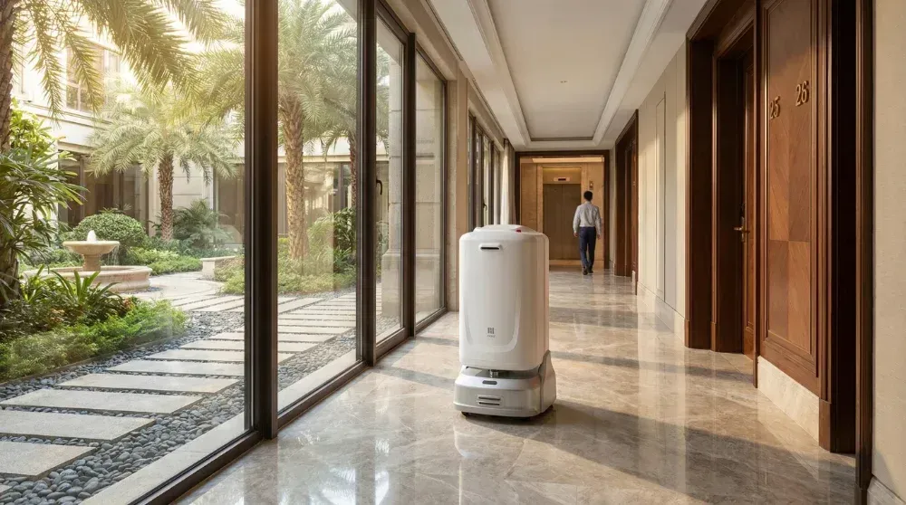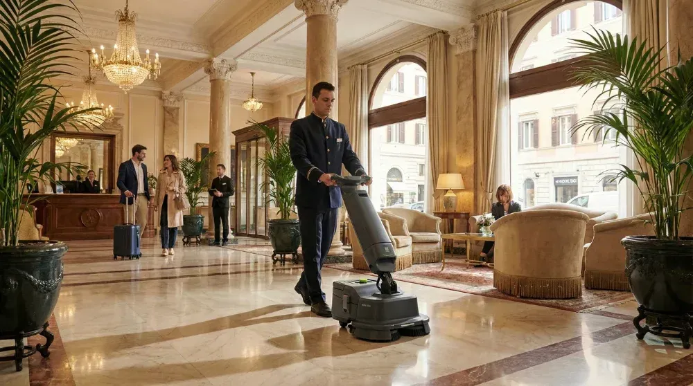 Hall, corridoi, piscina, fitness e aree di passaggio hanno finestre operative strette e standard elevati. Un robot diventa efficace quando entra in una routine programmata, con regole chiare.