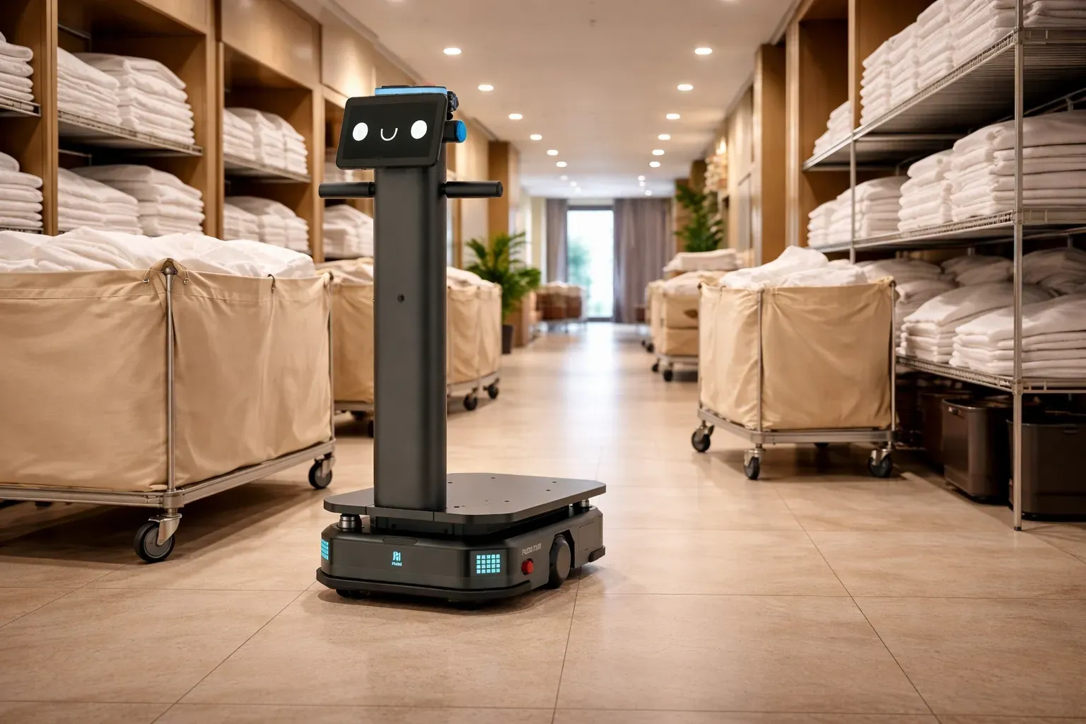 Per trasporto biancheria e bagagli su tratte ricorrenti, con supporto a carico/sollevamento/traino e modalità “segui”, in base alla configurazione.
